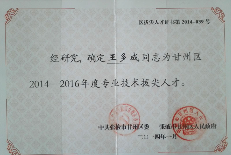 2014-2016年王多成甘州區(qū)專業(yè)技術(shù)…